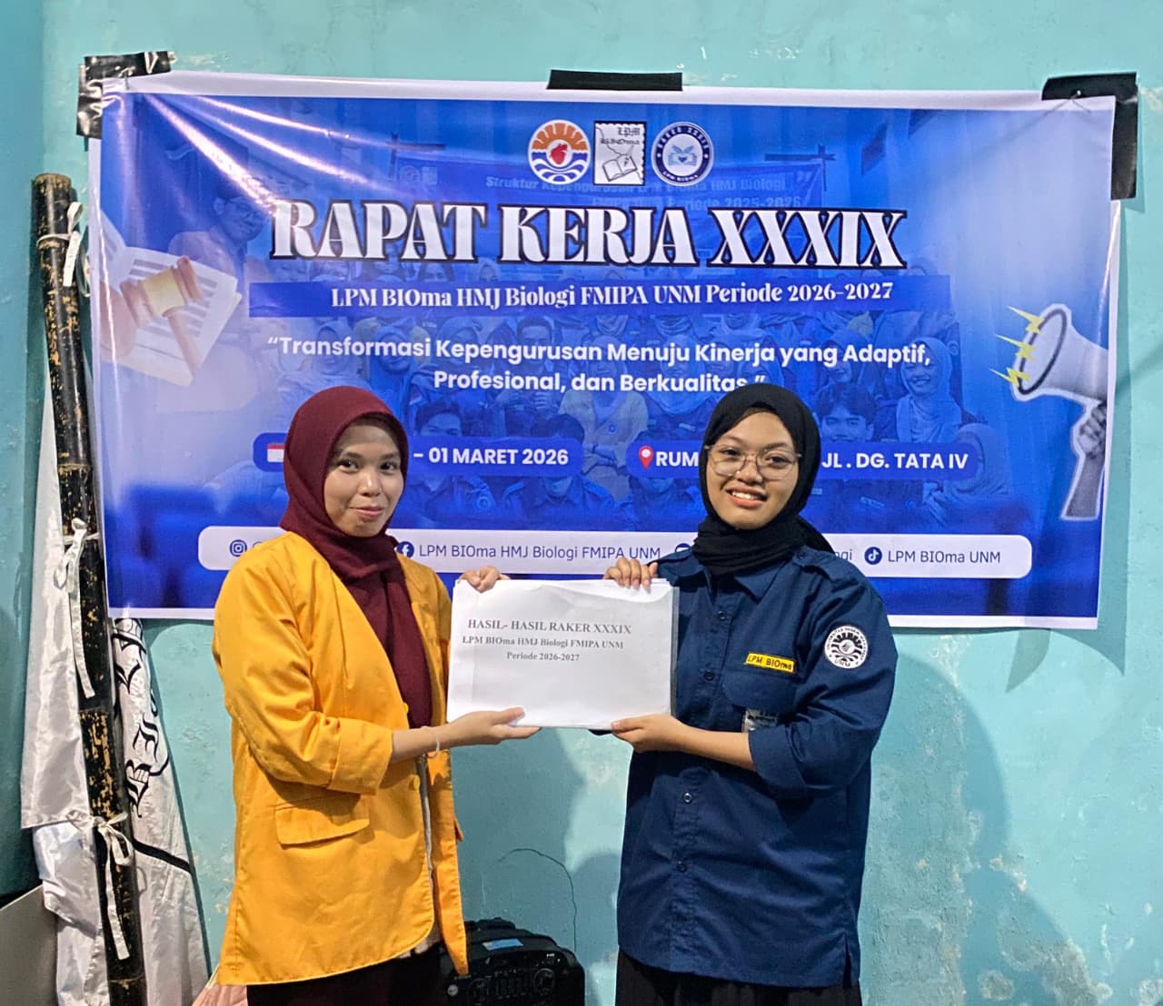 BIOma – LPM BIOma Himpunan Mahasiswa Jurusan (HMJ) Biologi Fakultas Matematika dan Ilmu Pengetahuan Alam (FMIPA) Universitas Negeri Makassar melaksanakan Rapat Kerja (RAKER) XXXIX periode kepengurusan 2026–2027. Kegiatan tersebut berlangsung di Rumah Redaksi LPM BIOma, Jl. Dg. Tata IV, pada Jumat hingga Senin (27/02–02/03).