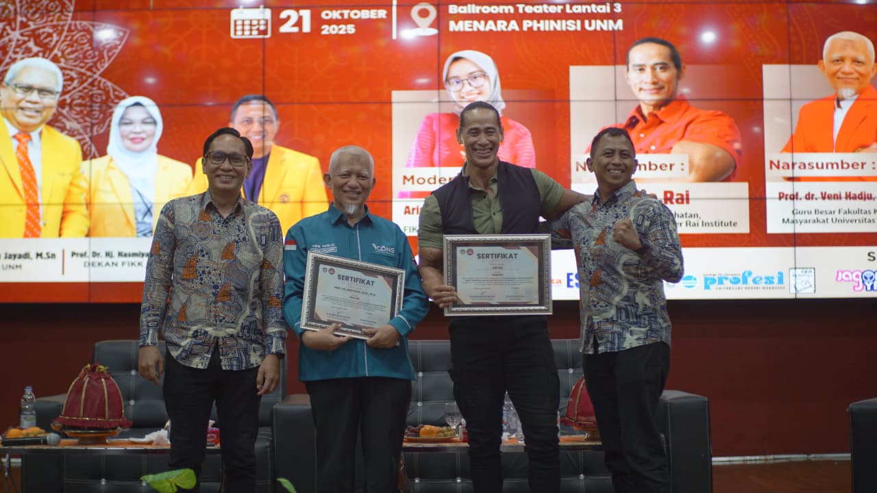 BIOma – Program Studi Gizi, Fakultas Ilmu Keolahragaan dan Kesehatan (FIKK) Universitas Negeri Makassar, sukses menyelenggarakan Seminar Nasional Gizi 2025 dengan tema “Tantangan Gizi dan Aktivitas Fisik di Era Digital: Mewujudkan Generasi yang Sehat, Aktif, dan Adaptif”. Kegiatan ini dilaksanakan di Ballroom Teater Lantai 3 Menara Pinisi UNM, Selasa (21/10).